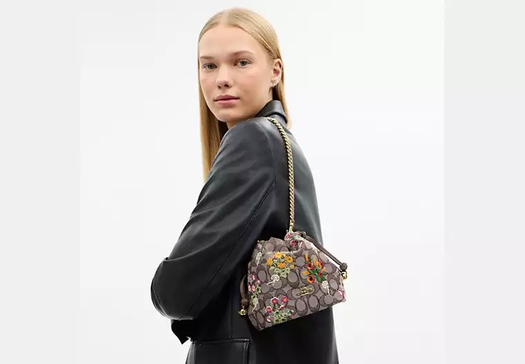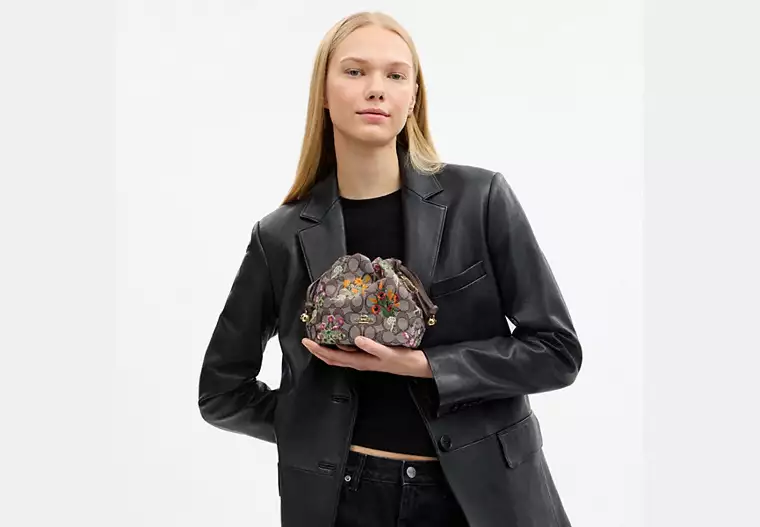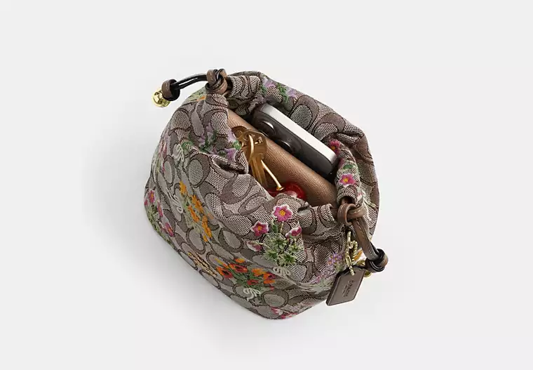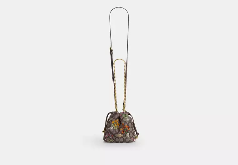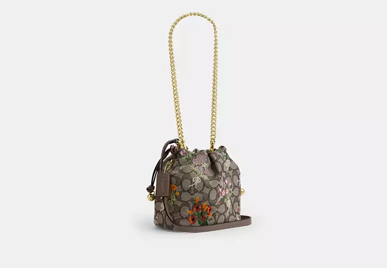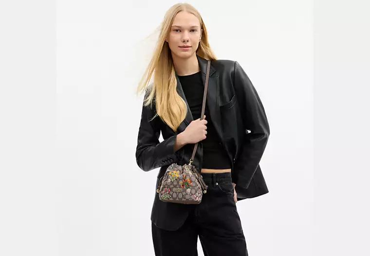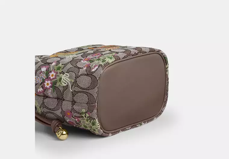 (M’sia Readystock) COACH Faye Mini Drawstring Bag In Signature Jacquard With Floral Embroidery In IM/Oat Multi CDZ94