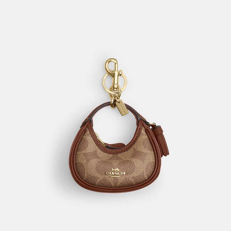 (MY Readystock) COACH Mini Carmen Bag Charm in Signature Canvas In IM/Tan/Brown CBK67