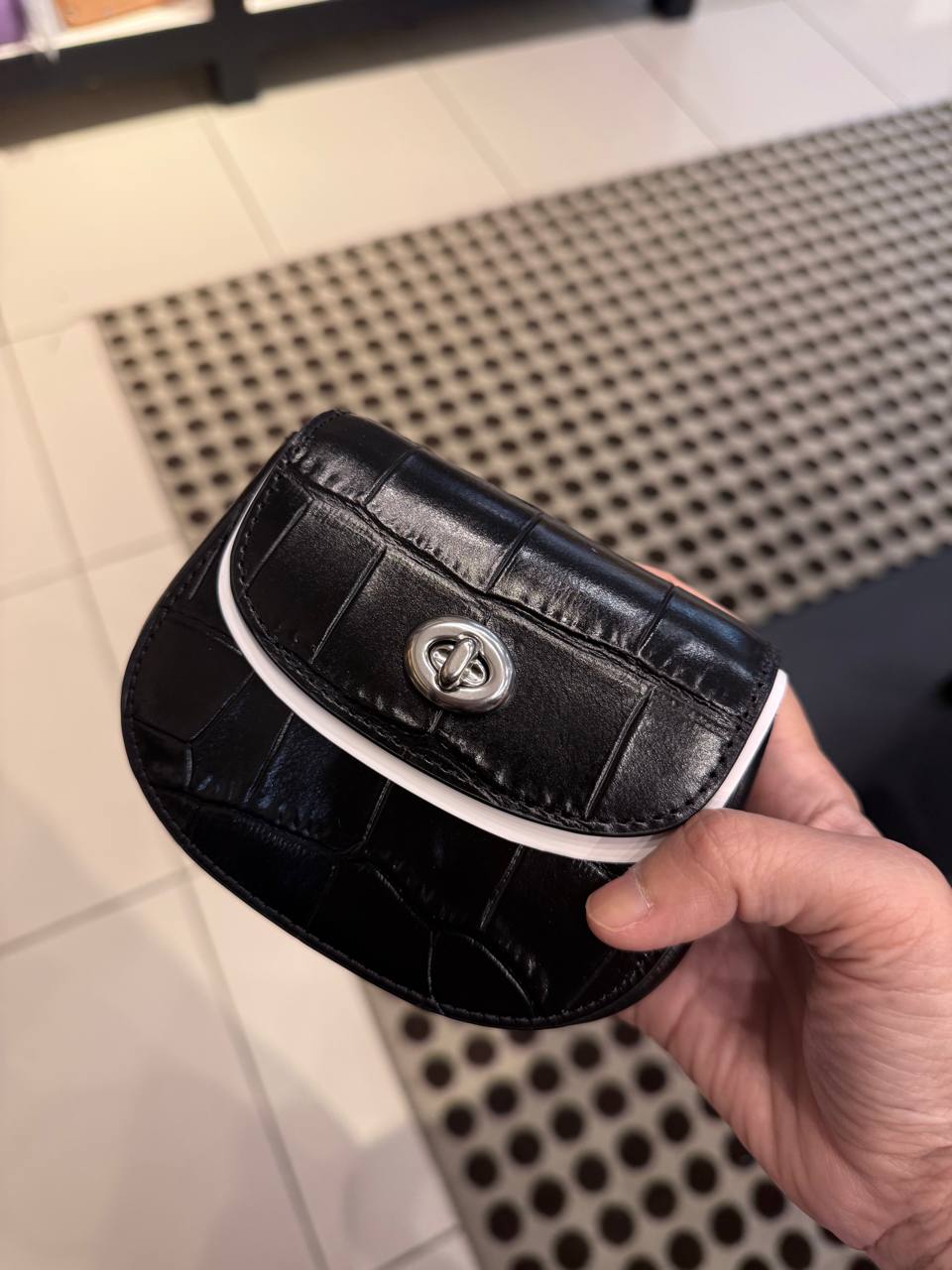 (MY Readystock) COACH Turnlock Card Case Crocs Embossed Leather Chain Crossbody In SV/Black CZ475