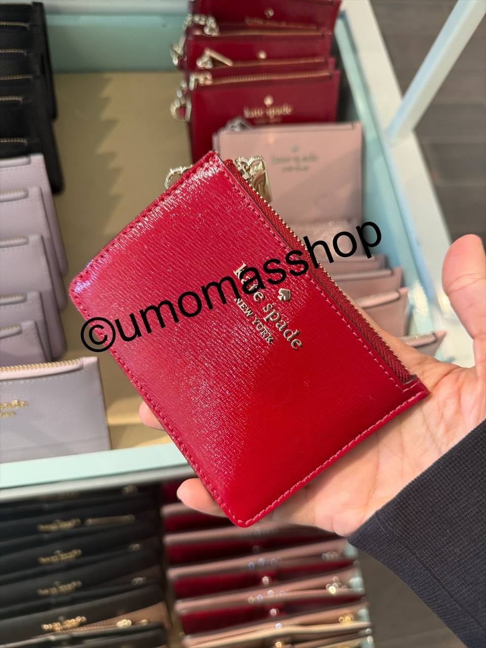 (MY Readystock) Kate Spade Wallet Textured Patent Leather Key Ring Card Holder In Red Jam KN868