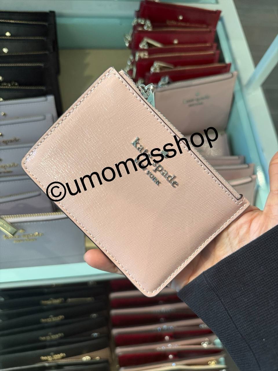 (MY Readystock) Kate Spade Wallet Textured Patent Leather Key Ring Card Holder In Tutu Pink KN868