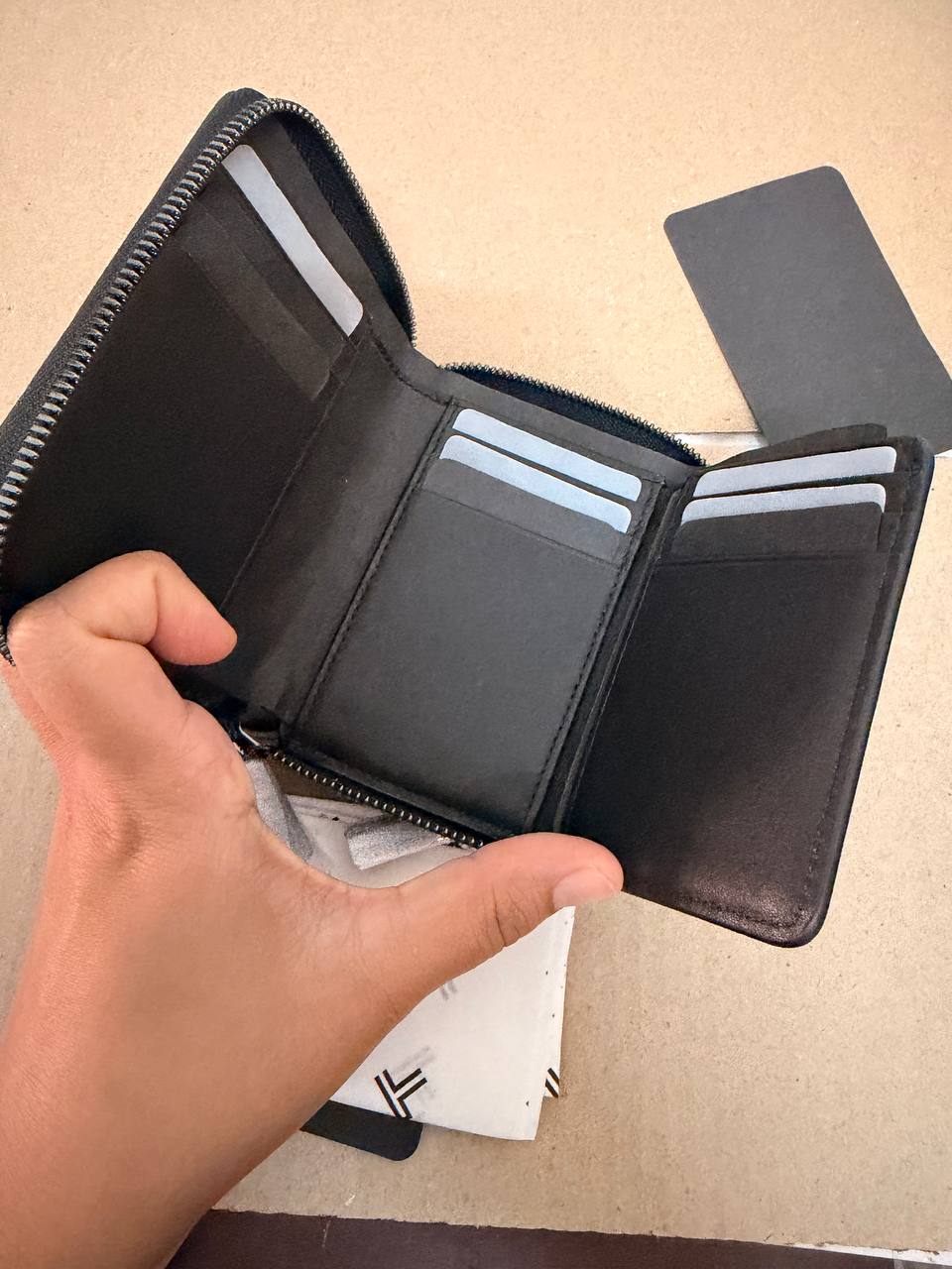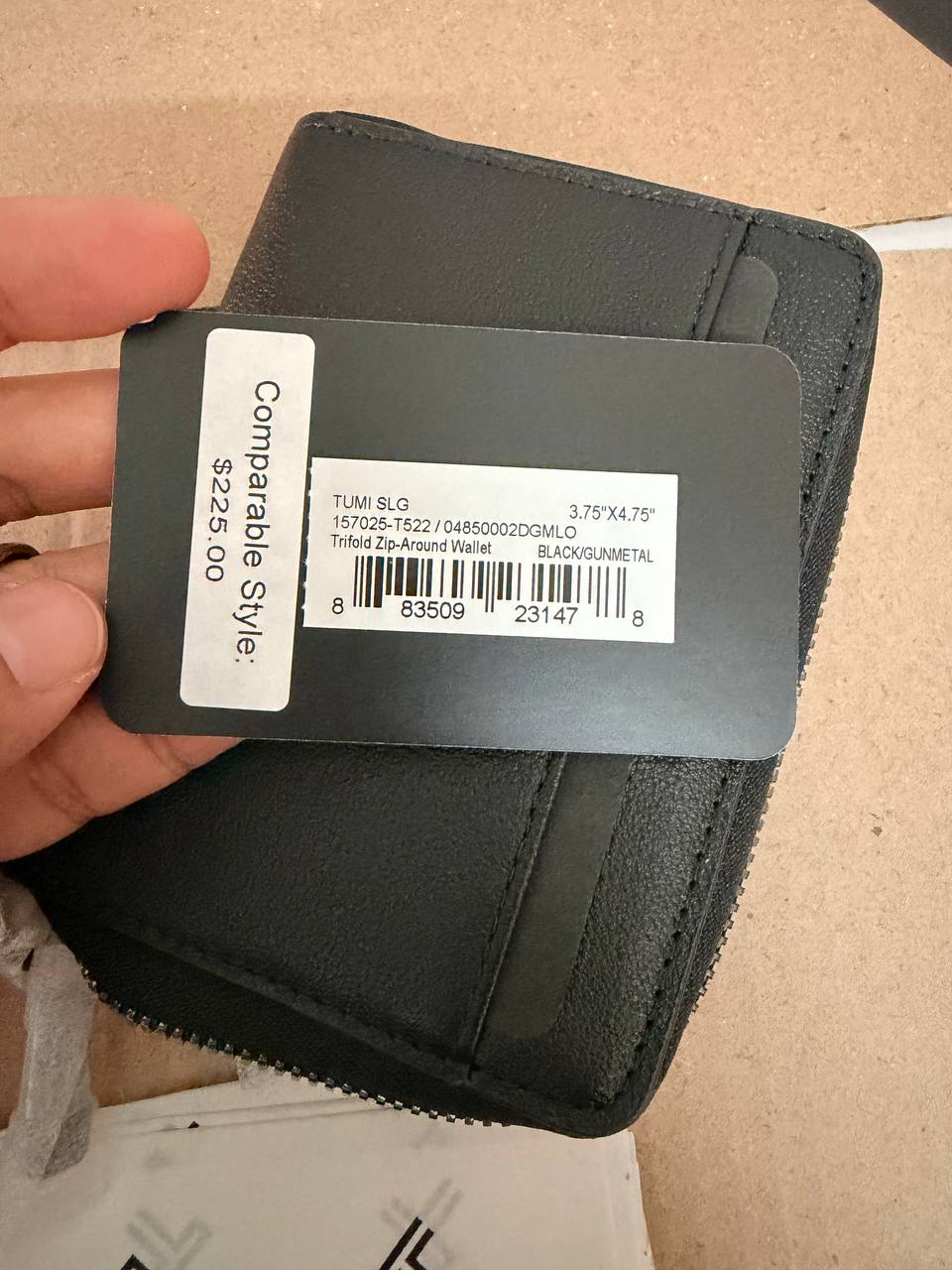 (MY Readystock) TUMI TriFold Zip-Around Wallet In Black/Gunmetal 157025-T522