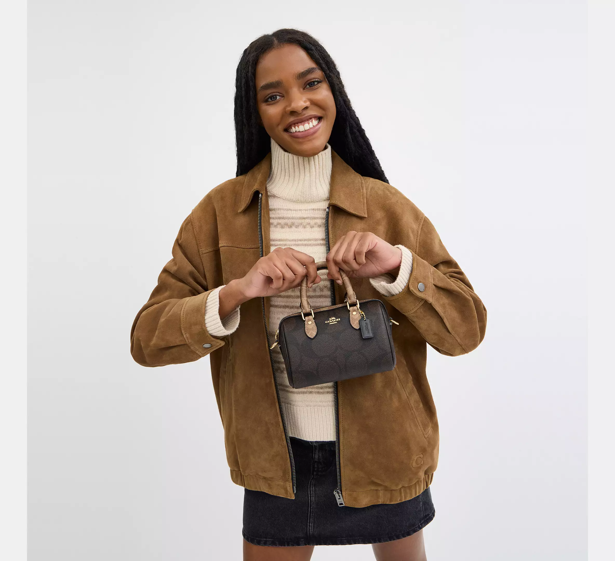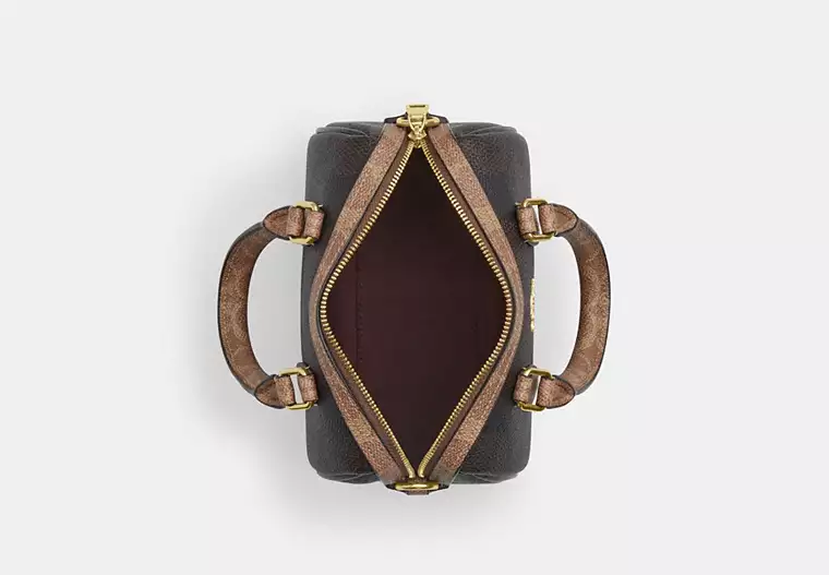 (PRE Order) COACH Mini Rowan Crossbody Bag In Blocked Signature Canvas Walnut/Tan CAB16