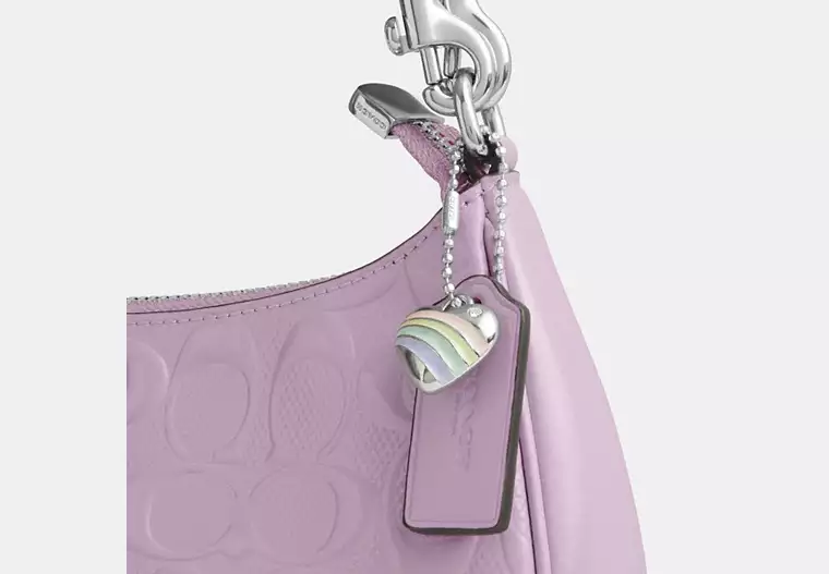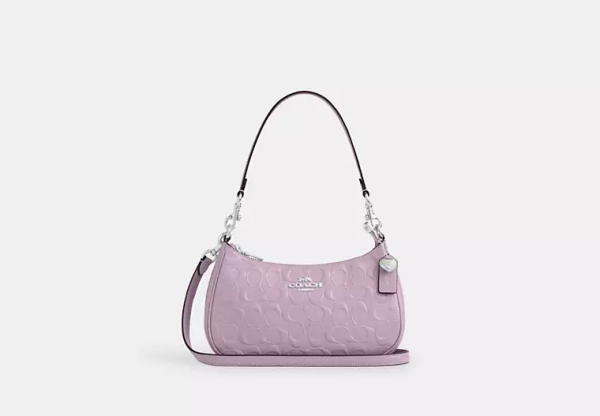 (PRE Order) COACH Teri Shoulder Bag In Signature Leather With Heart Charm in Patent Leather/Silver/Light Violet CDA98