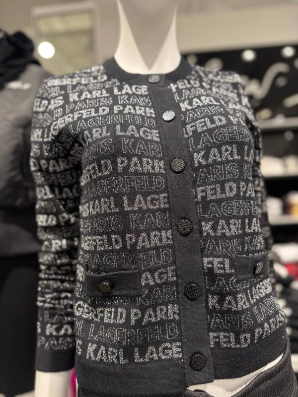 (PRE Order) KARL LAGERFELD Logo Lurex Cardigan In Black L5ZSY751