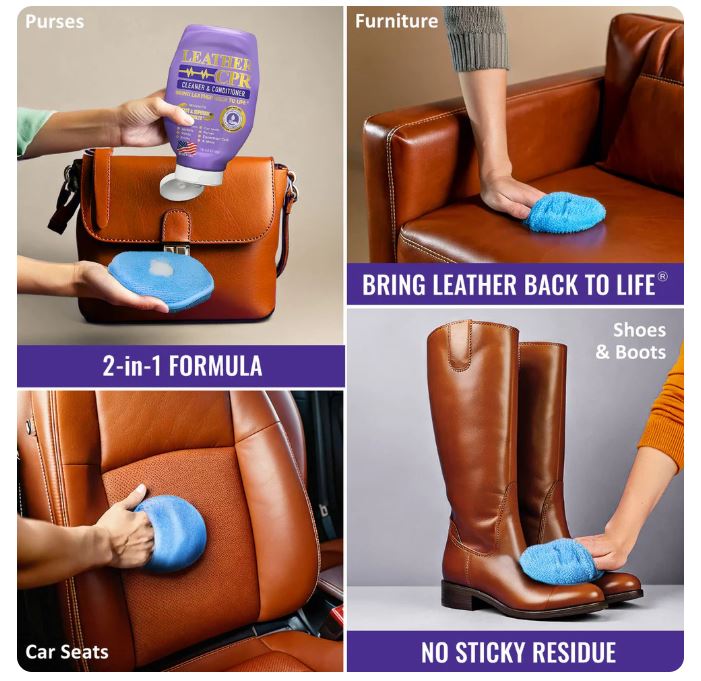 Cleans, Conditions, Restores & Protects Leather Furniture, Handbags, Car Seats, Jackets, Boots, Shoes, Saddles, Tack, & More.