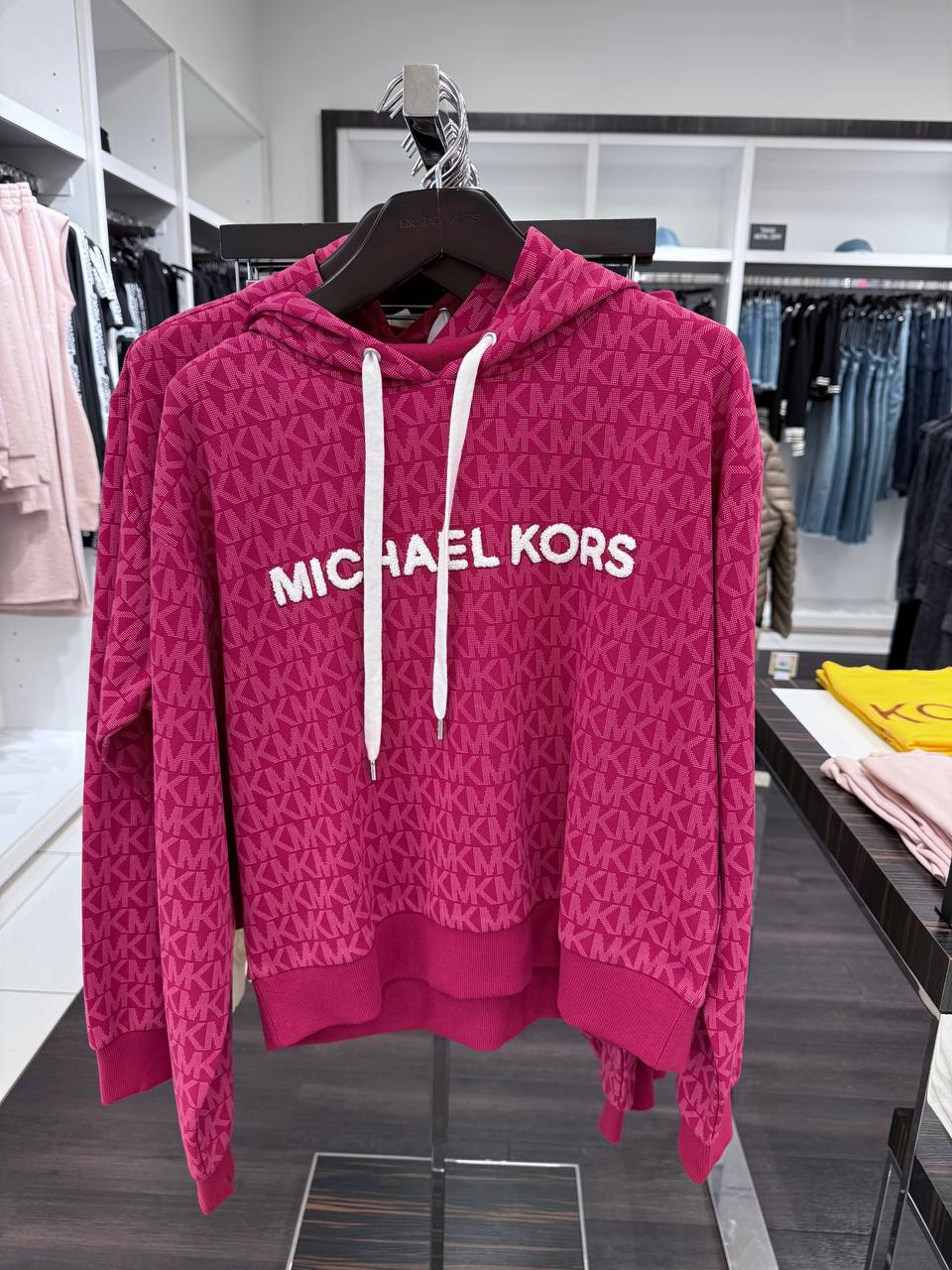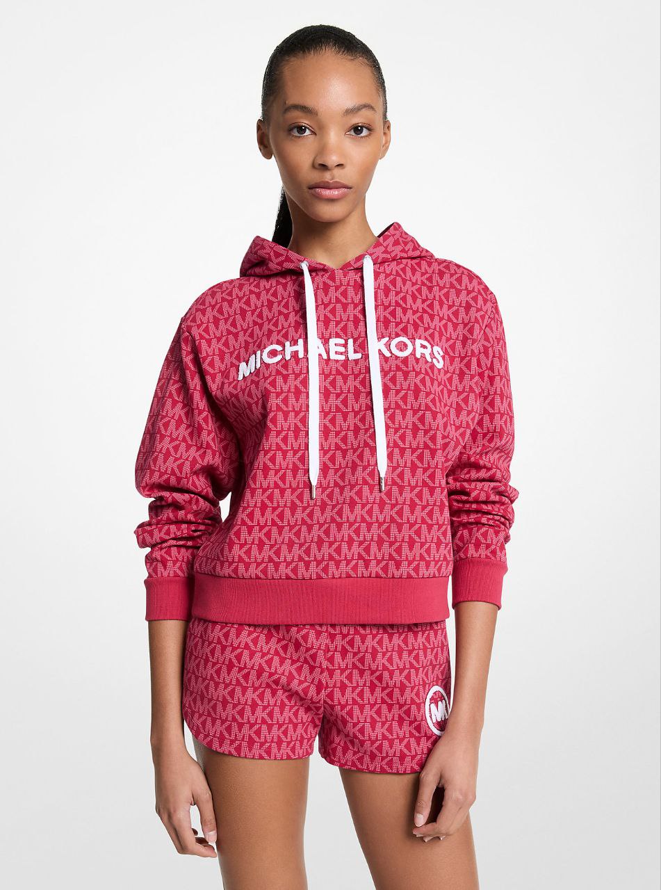 (PRE Order) MICHAEL KORS Signature Logo Cotton Blend Cropped Hoodie