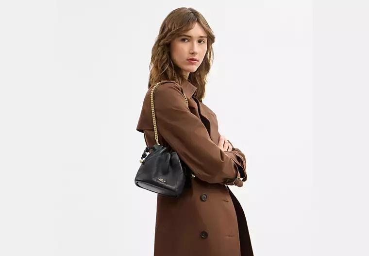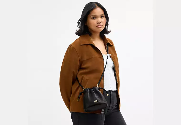 (US Readystock) COACH Faye Mini Drawstring Bag with Quilting In IM/Black CDB69