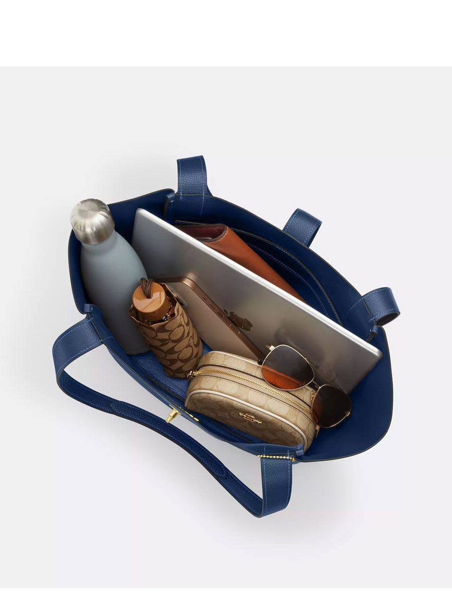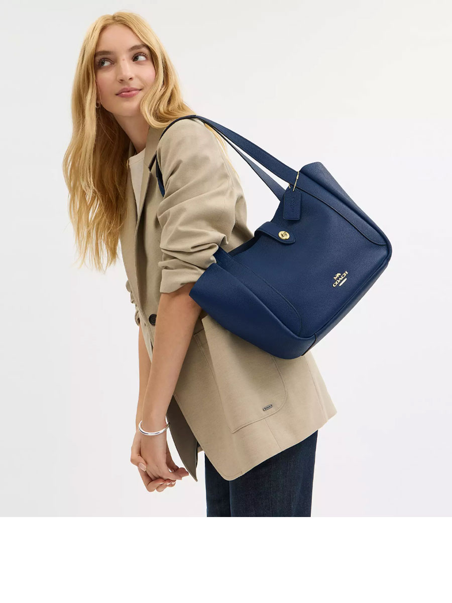 (US Readystock) COACH Hadley Turnlock Tote Bag In IM/Deep Blue CAL17