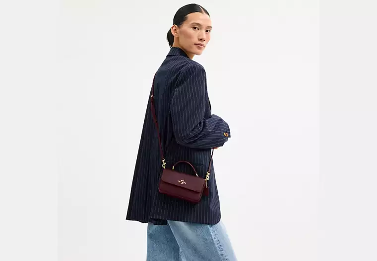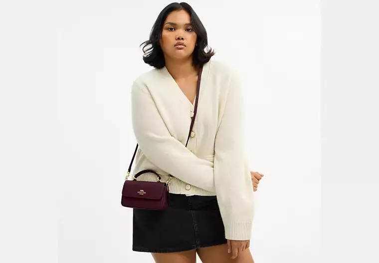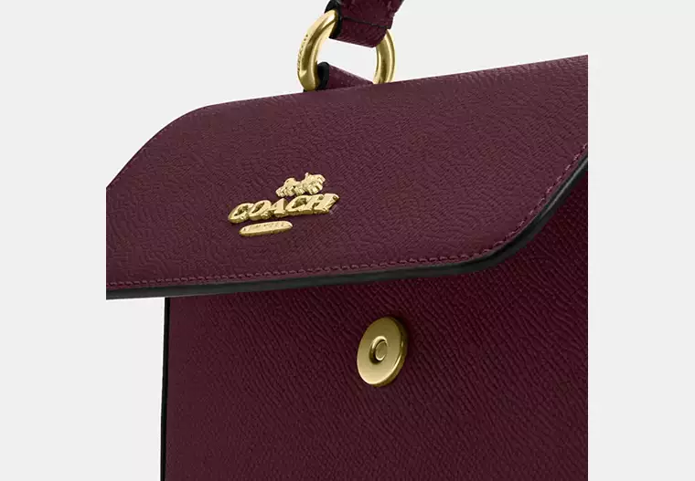 (US Readystock) COACH Mini Josie Top Handle Bag In Gold/Dark Wine CCK67