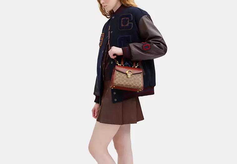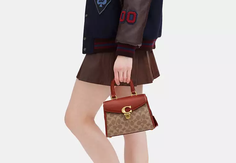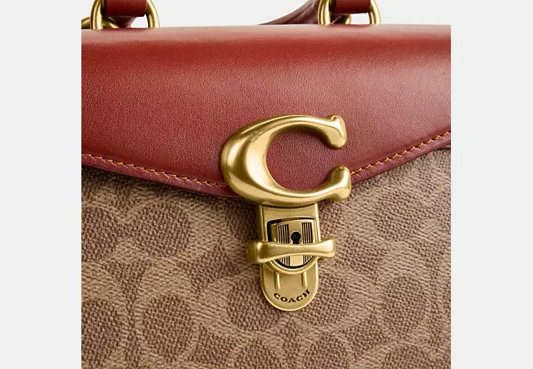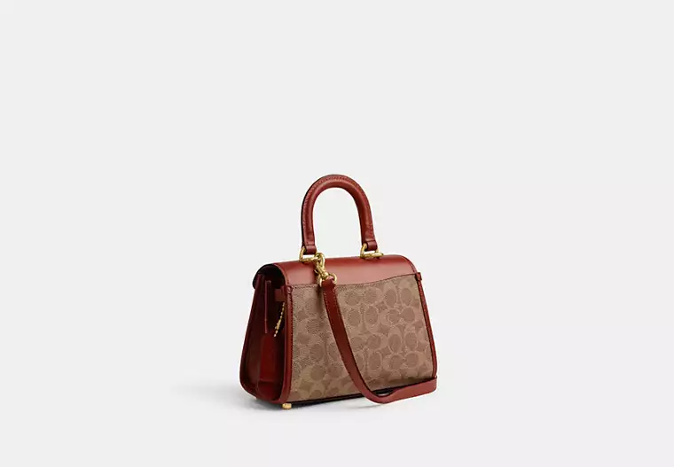 (US Readystock) COACH Sammy Top Handle Bag 21 in Signature Canvas In Brass/Tan/Rust CJ831