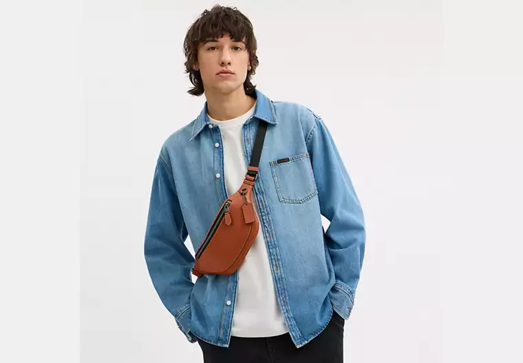 (US Readystock) COACH Warren Mini Belt Bag In Gunmetal/Tan CBI29
