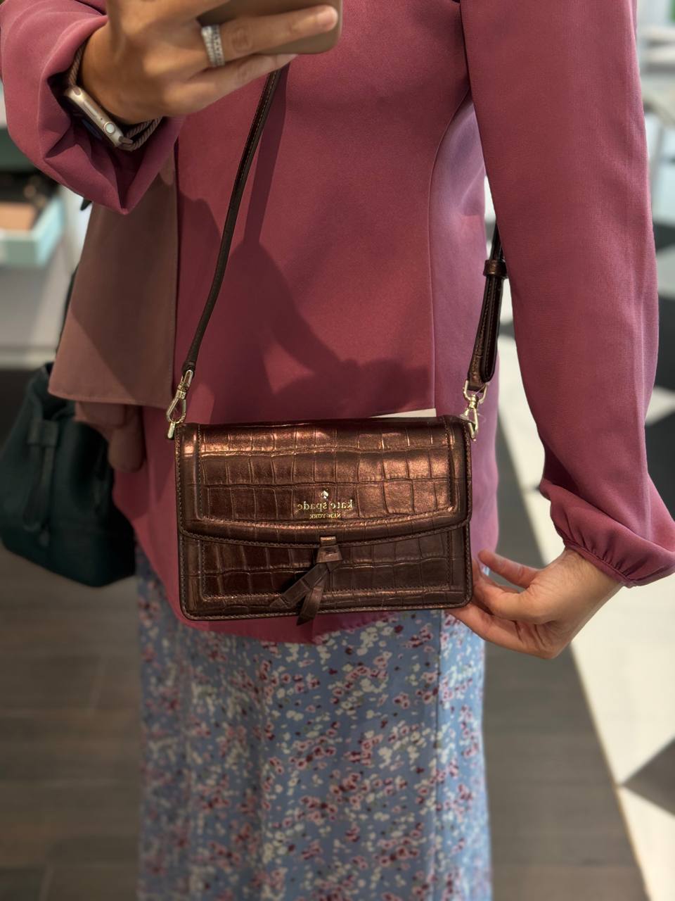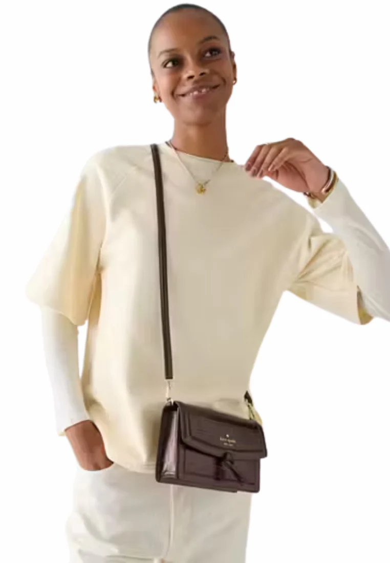 (US Readystock) KATE SPADE Knott Croc Embossed Mini Flap Crossbody Bag In Hot Fudge KN214