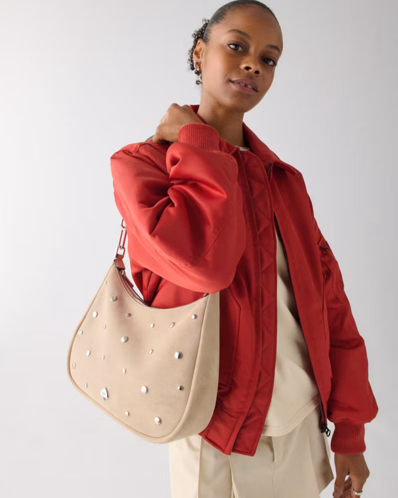 (US Readystock) KATE SPADE Suede Studs Large Shoulder Bag In Milk Glass KM671