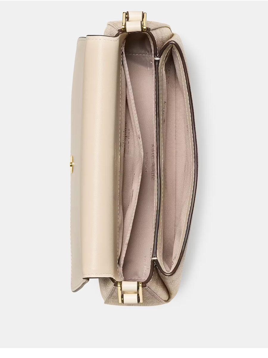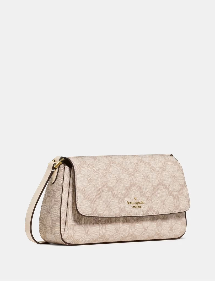 (US Readystock) KATE SPADE Sutton Spade Flower PVC Mini Flap Crossbody In Dark Beige KO534